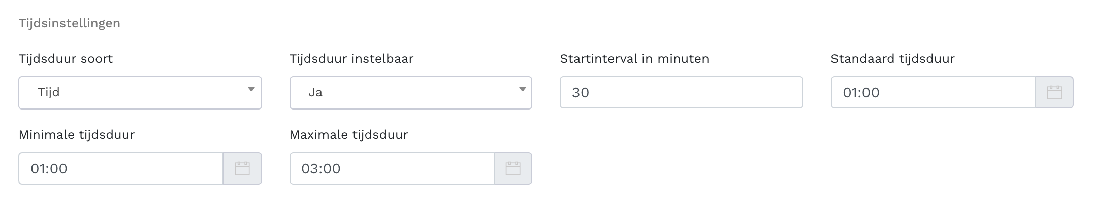 | Tijdsduur instelbaar | Mag de gast beslissen tussen een minimale en maximale tijd hoe lang de activiteit duur? Dan selecteer je ‘Ja’. Wanneer het een vaste tijd betreft selecteer je ‘Nee. |