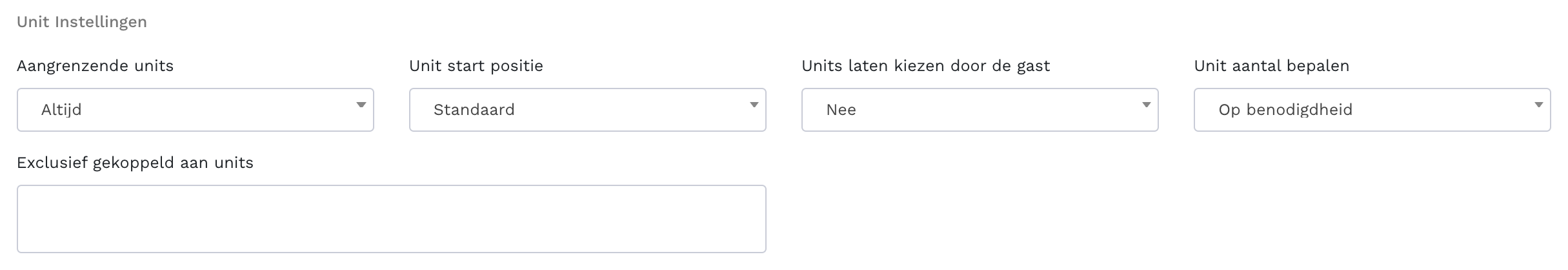 | Units laten kiezen door gast | Wanneer je wilt dat je gasten expliciet moeten zeggen welke specifieke units ze willen dan zet je deze op ‘Ja’. Als je vindt dat het systeem dit moet bepalen zet je dit op ‘Nee’. |