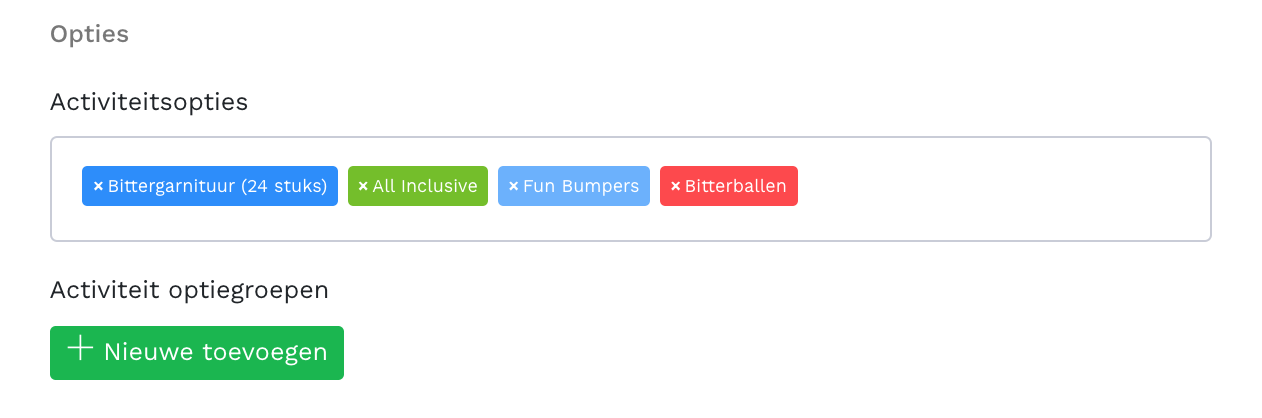 5. Nu dat de basis gegevens zijn ingevuld kun je de activiteit nog voorzien van bestaande opties. Heb je nog geen opties beschikbaar? Dan kun je deze eenvoudig later alsnog koppelen aan de activiteit.