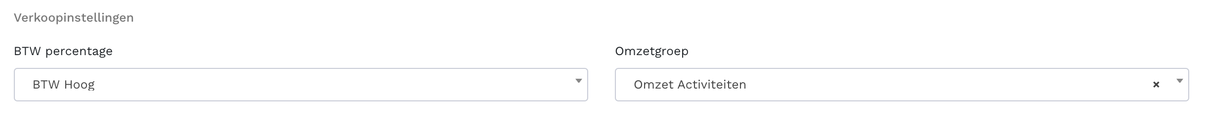 | BTW Percentage | Geef aan welk BTW percentage berekent dient te worden voor deze activiteit |