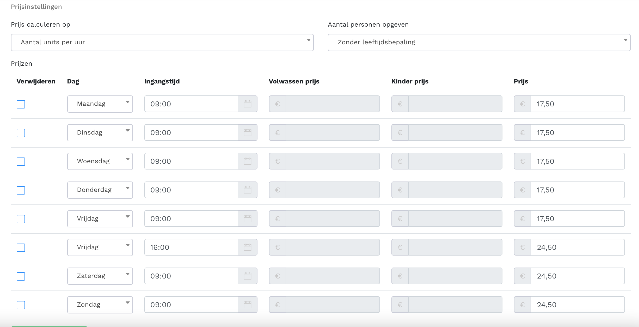 6. Het tabblad ‘Prijsinstellingen’ geeft de mogelijkheid om een prijs te berekenen voor deze activiteit.