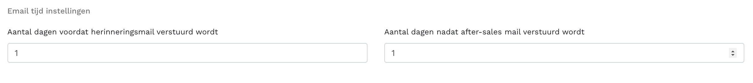 | Aantal dagen nadat after-sales mail verstuurd wordt | Wanneer je wilt dat je gasten een bedank mailtje krijgen na de reservering dan kun je een aantal dagen na de reservering hiervoor nog een after-sales mail versturen. Geef hier het aantal dagen in. |