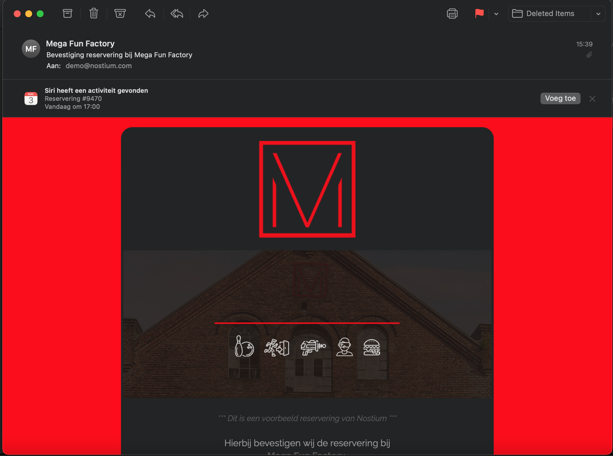 Wanneer je het voor de gast makkelijker wilt maken om een reservering toe te voegen aan de persoonlijke agenda. Kun je ervoor kiezen om een ICS bestanden mee te sturen in de bevestigingsmail van de reservering.