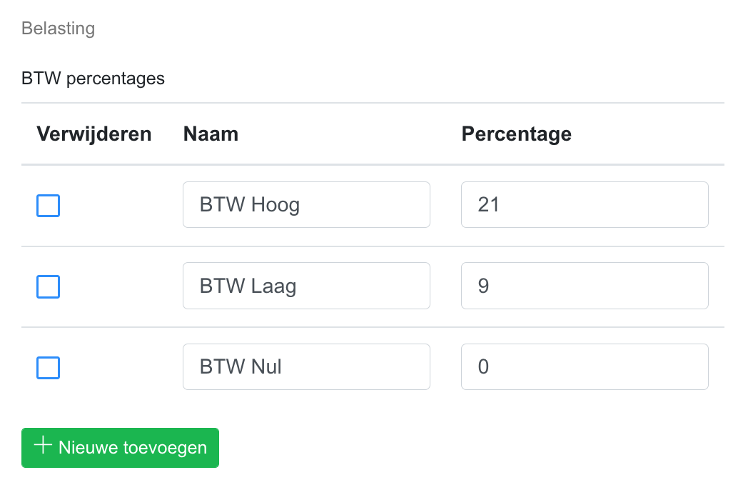 Maak in de backoffice onder de bedrijfsinstellingen de gewenste belastingtarieven aan.