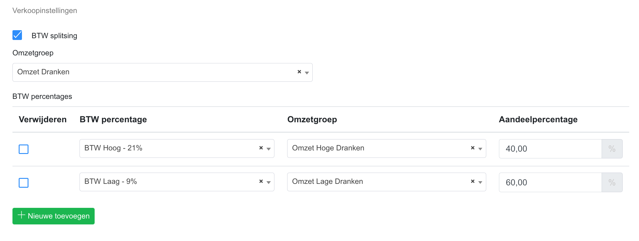 Let op! Dit een functionaliteit die niet standaard aanstaat. Zie je de optie van ‘BTW splitsing’ niet? Neem dan contact met ons op.