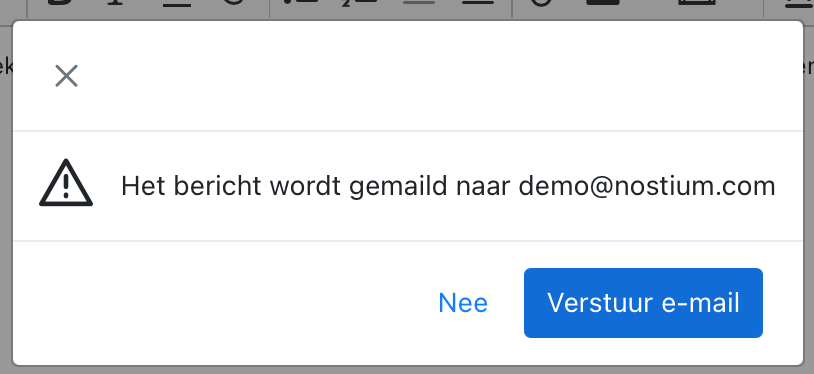 Het systeem zal je nog vragen de e-mail definitief te versturen door je dit laten te bevestigen. Hierin zie je ook het e-mailadres ter controle waar de e-mail heen gaat. Druk op “Verstuur e-mail” om de actie te voltooien.