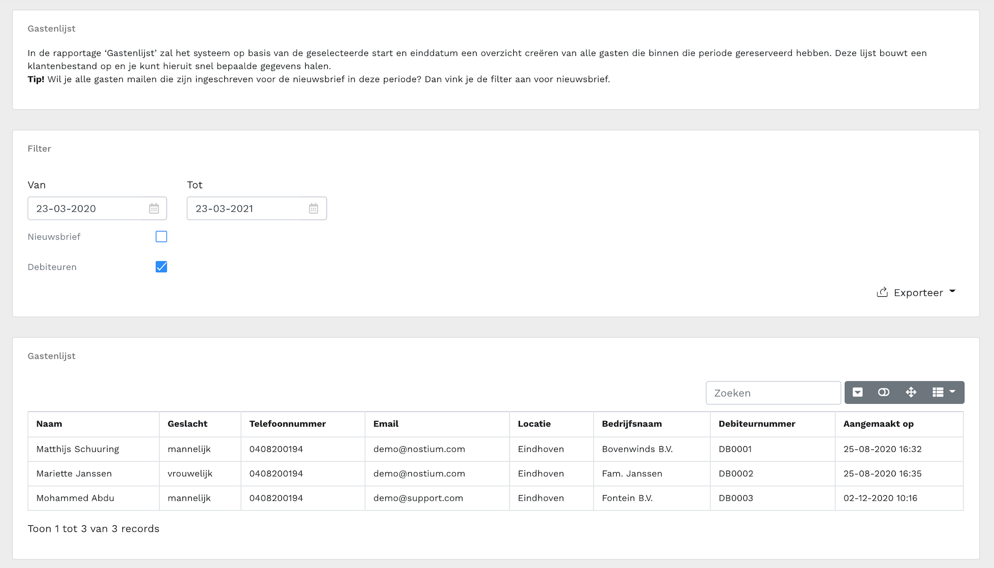 Navigeer binnen de back-office via het linker-menu naar [Rapportages → Gastenlijst]