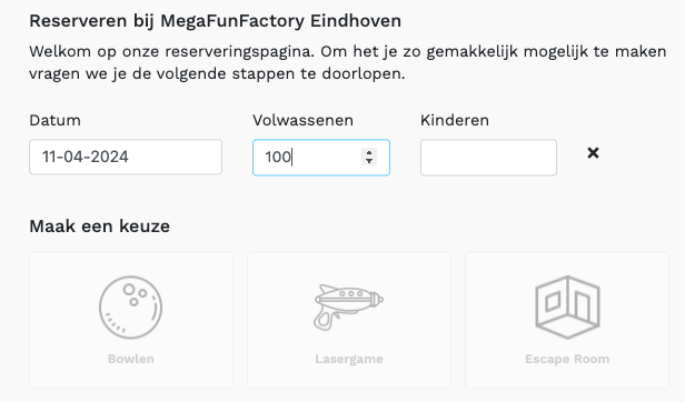 Wanneer je hier de gewenste datum en het aantal personen in voert, zal het systeem direct laten zien wat er wel- en niet beschikbaar is.