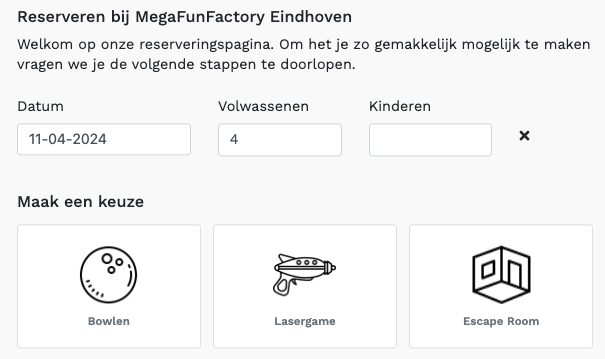De gast zal dan op de landingspagina van het gastenportaal direct drie velden te zien krijgen met een datum veld en twee velden voor volwassenen en kinderen.