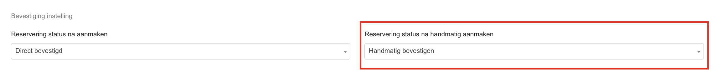 Bij ‘Reservering status na handmatig aanmaken’ kun je de status wijzigen naar de gewenste status.