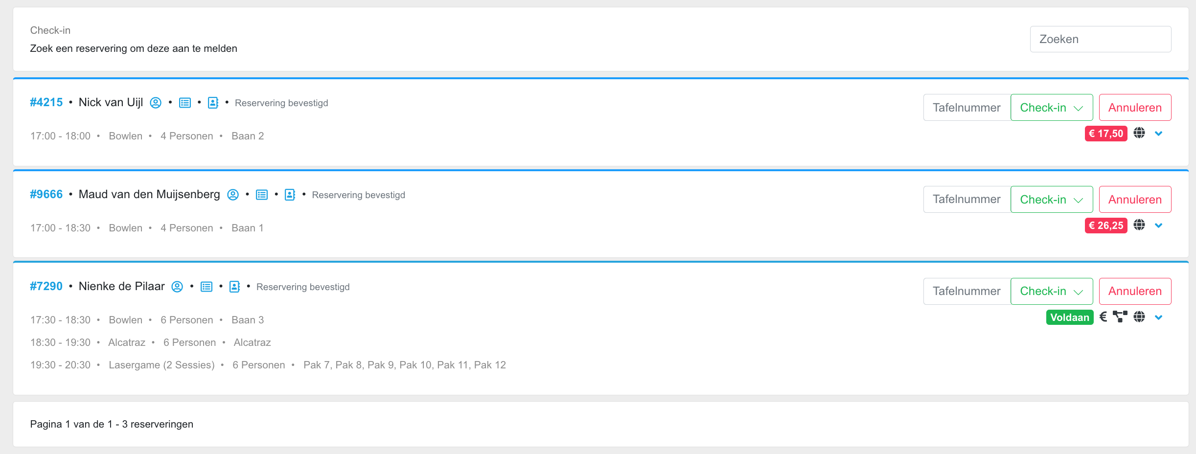 Als alles staat ingesteld dan is de koppeling actief. De reservering komt online of handmatig in Nostium terrecht met daarbij de gereserveerde artikelen en bijbehorende prijs. De berekening van de prijs zal Nostium verzorgen tijdens het reserveringsproces. Op de dag van de reservering zal op het dashboard & planbord van de gebruiker een check-in lijst beschikbaar worden gesteld van alle reserveringen van die dag.