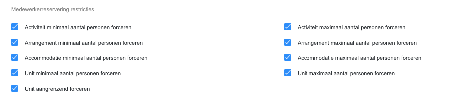 | Accommodatie minimale aantal personen forceren | Het minimale aantallen personen dat binnen de accommodatie benodigd is hanteren. |