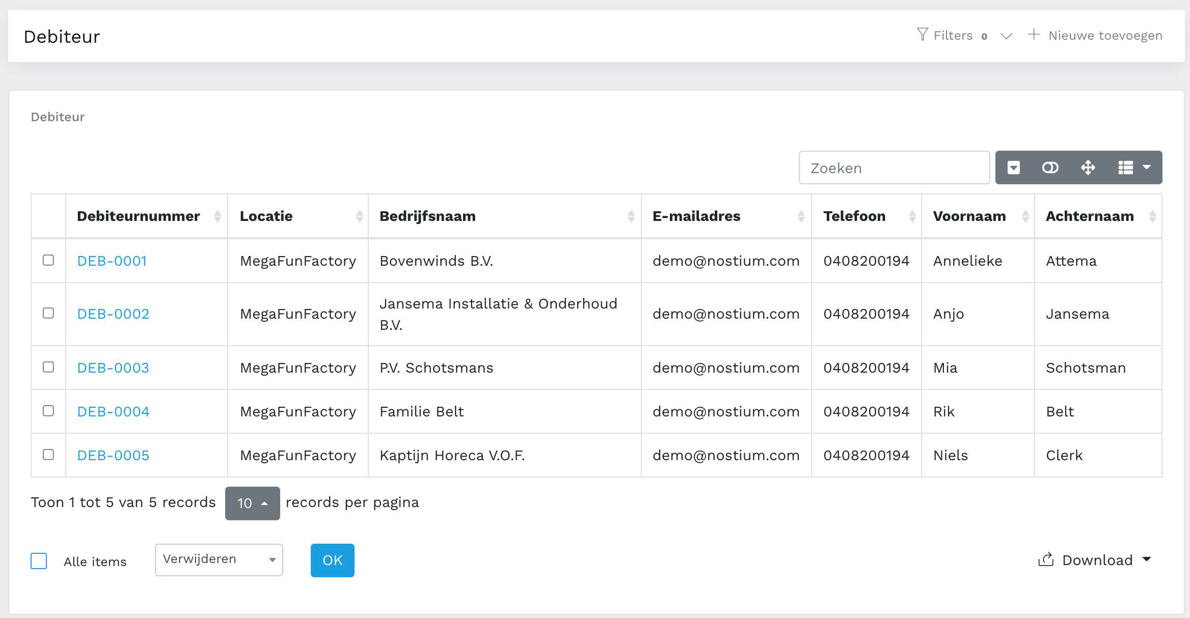 Let op! Het debiteurennummer wordt automatisch aangemaakt en toegewezen