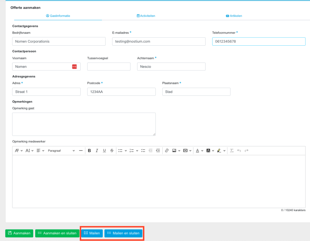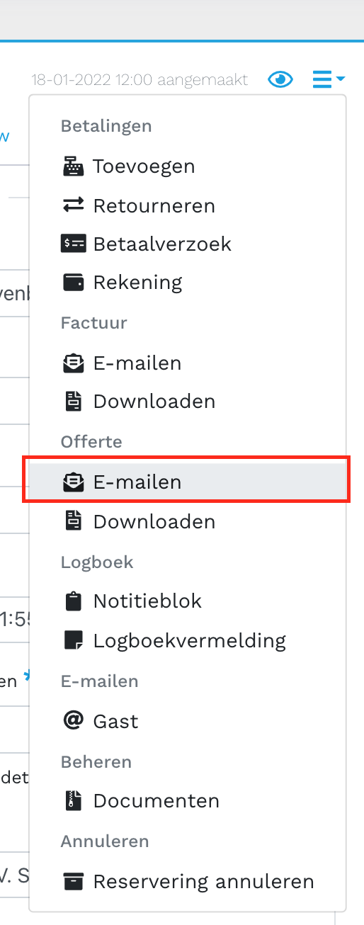 Wanneer een offerte is opgesteld en je wilt deze aan de gast versturen is dat natuurlijk mogelijk.