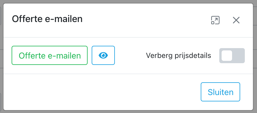Klik vervolgens op de “Offerte e-mailen” knop. Op dat moment wordt dan de offerte gemaild naar het e-mailadres van de ontvanger.