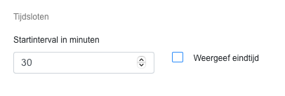 Tip! Startinterval kan ook gebruikt worden om een opruimtijd of standaard pauze moment tussen reserveringen te creëren. Hiervoor zet je dan de standaardtijdsduur op ‘1 uur’ en het interval op ’90 minuten’. Je hebt dan tussen reserveringen ’30 minuten’ speling.