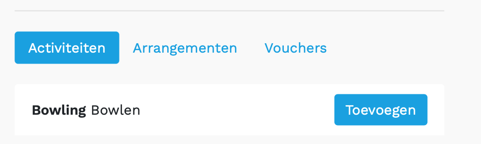 Je krijgt dan door op toevoegen de mogelijkheid activiteiten, arrangementen of vouchers toe te voegen aan deze subcategorie.