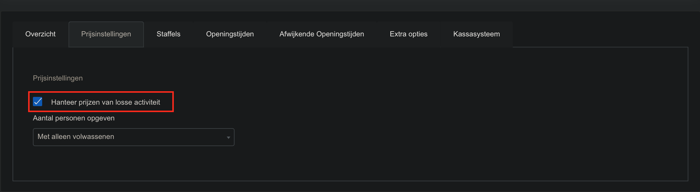 Vink de optie aan “Hanteer prijzen van losse activiteiten”