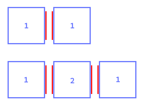 Denk bijvoorbeeld aan wanneer je 4 vierkante tafels tegen elkaar aan schuift, dat je dan per tafel 2 zitplekken verliest, terwijl je bij de buitenste tafels maar één zitplek verliest (omdat je de kop overhoudt).